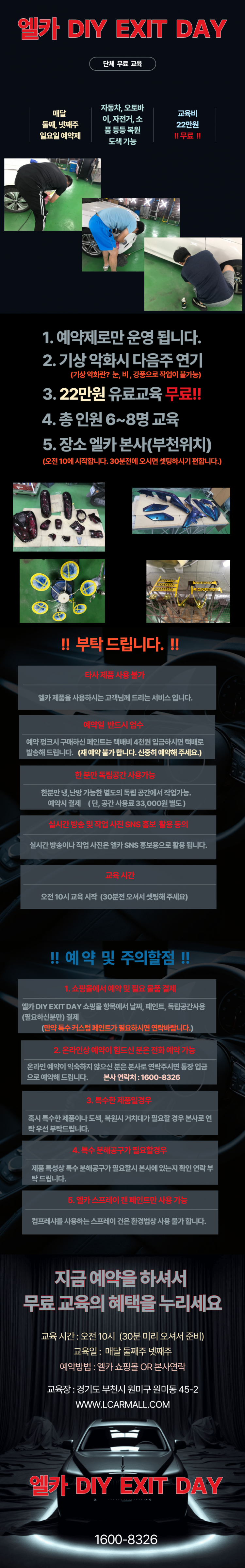 엘카 DIY EXIT DAY 단체 무료교육 안내 페이지 정보 작성자 엘카 작성일19-03-28 17:29 조회34,129회 댓글0건 관련링크 http://lcar.co.kr/shop/item.php?it_id=1421622994 83회 연결 다음글 목록 본문 쇼핑몰 예약 바로가기 댓글목록 등록된 댓글이 없습니다. 다음글 목록